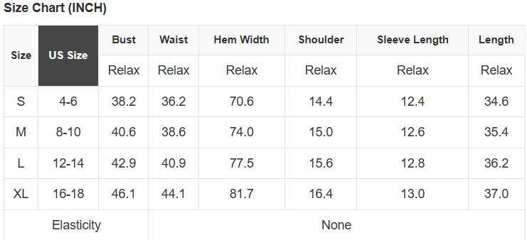 See size chart for approximate measurements.