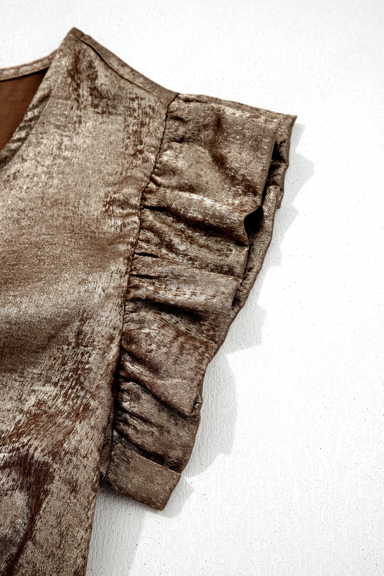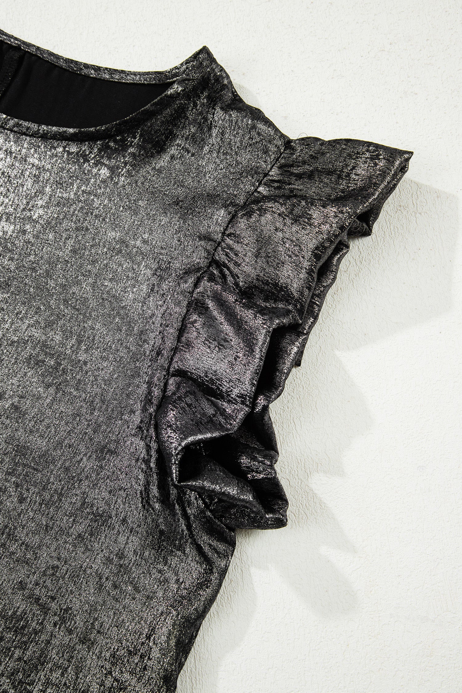 Metallic Ruffle Trim Sleeveless Round Neck Top