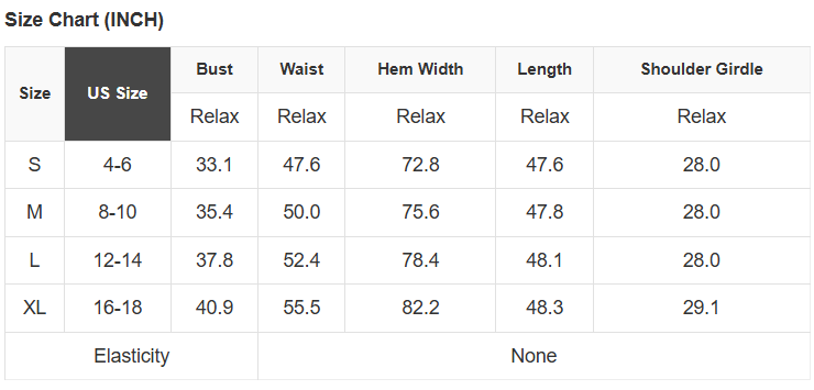 See size chart for approximate measurements.