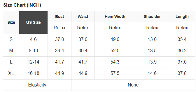 See size chart for approximate measurements