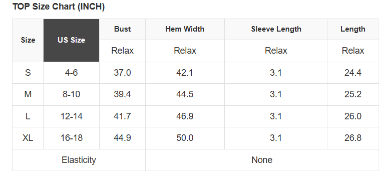 See size chart for approximate measurements.