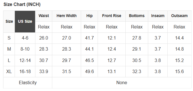 See size chart for approximate measurements
