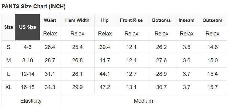 See size chart for approximate measurements.