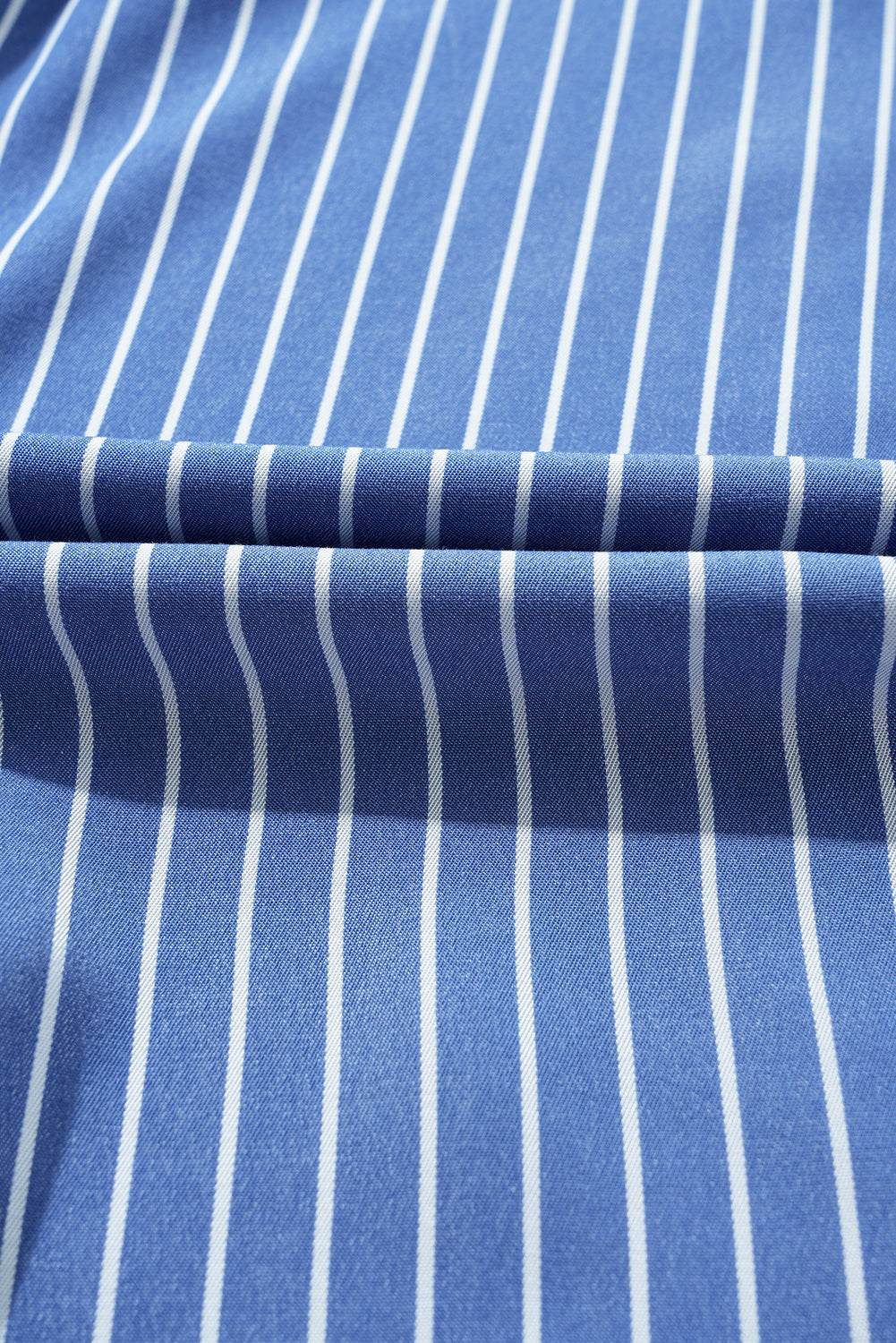 Stripe Frilly Neck Shirred Ruffle Sleeve Mini Dress