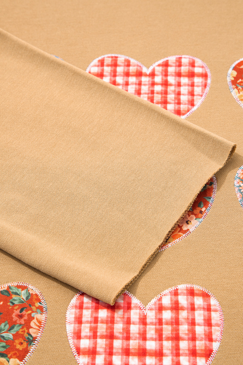 Valentine Heart Patchwork Reverse Seam Sweatshirt
