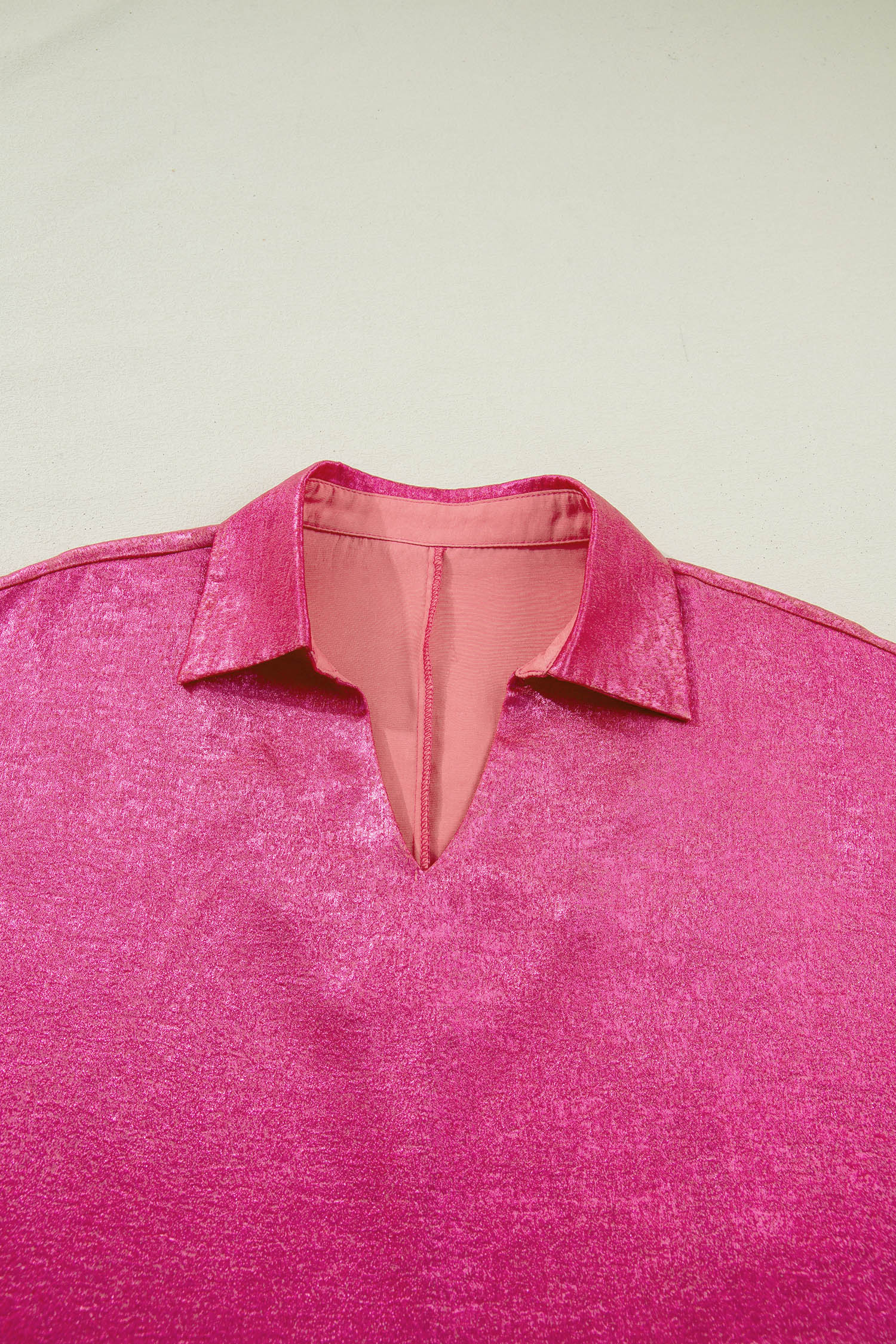 Metallic Collared V-Neck 3/4 Sleeve Top