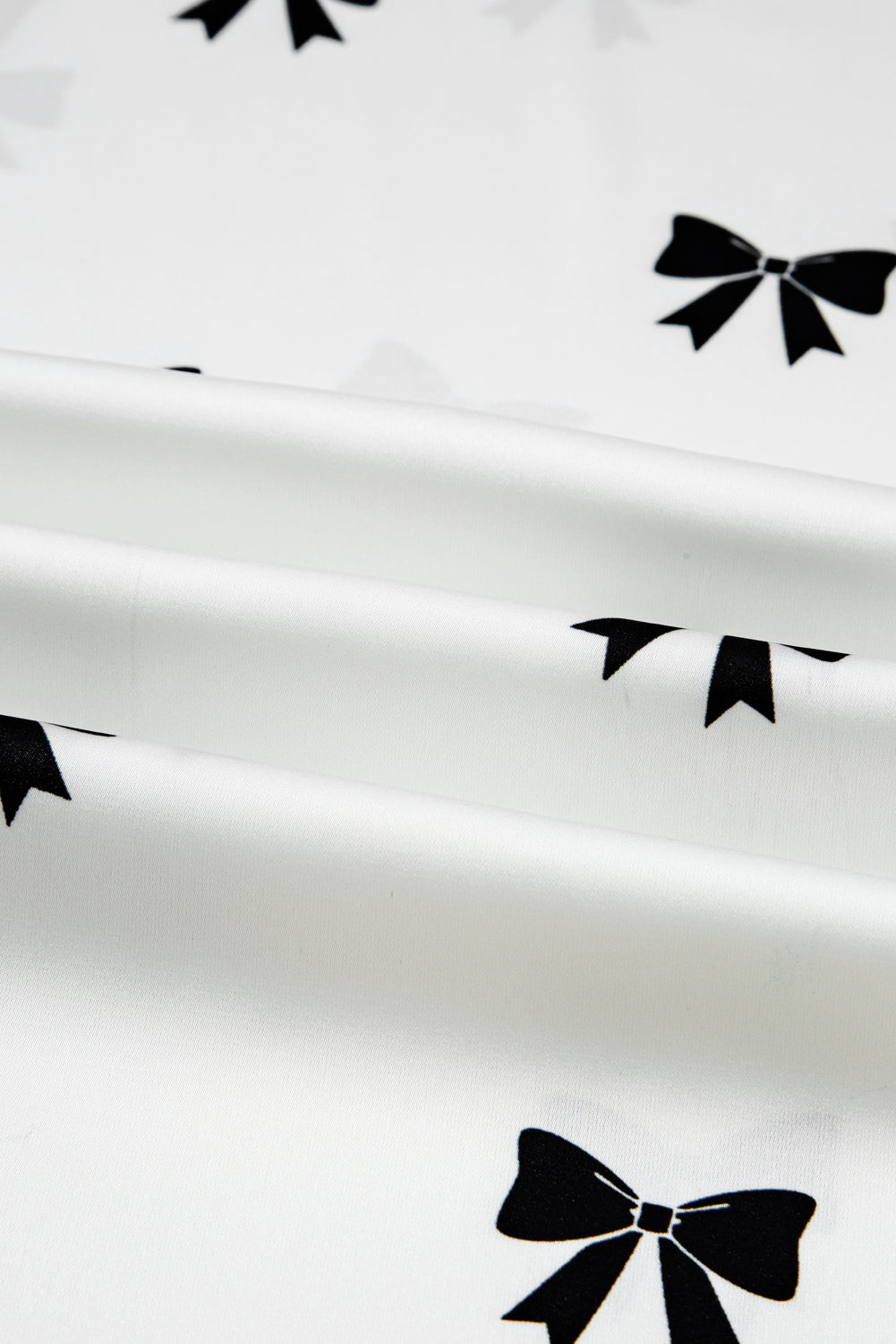 Get ready to sleep in style with this precious two-piece sleepwear set featuring an adorable bow print that's pure sweetness. The buttoned top makes getting dressed and undressed a breeze, while the lace-up waistband lets you dial in the perfect fit for maximum comfort. Crafted from soft, breathable fabric that feels like a gentle hug against your skin, this charming set transforms bedtime into a cozy retreat. Sweet dreams have never looked so cute. Polyester/Spandex