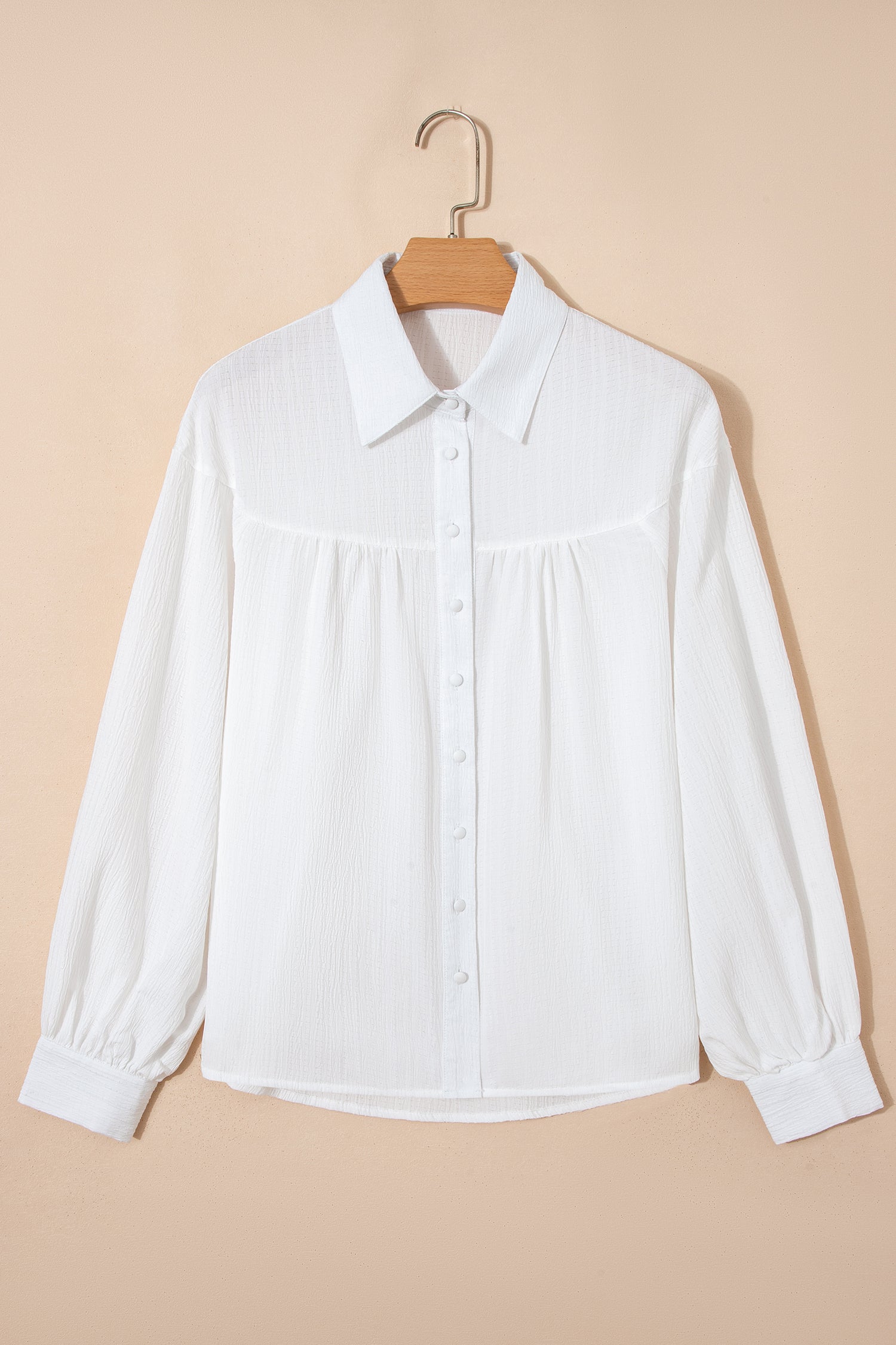 Solid Crinkled Lantern Sleeve Buttoned Shirt
