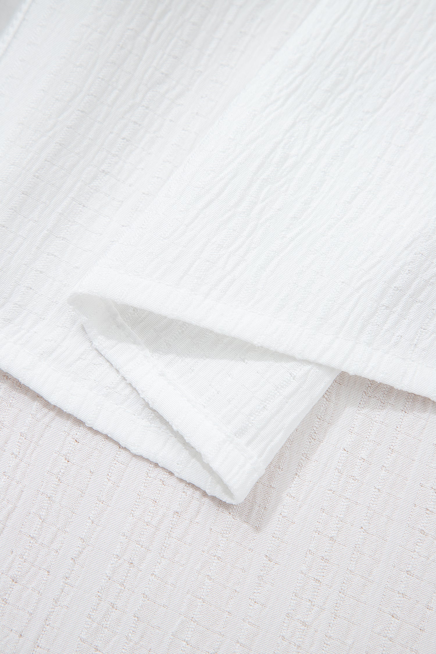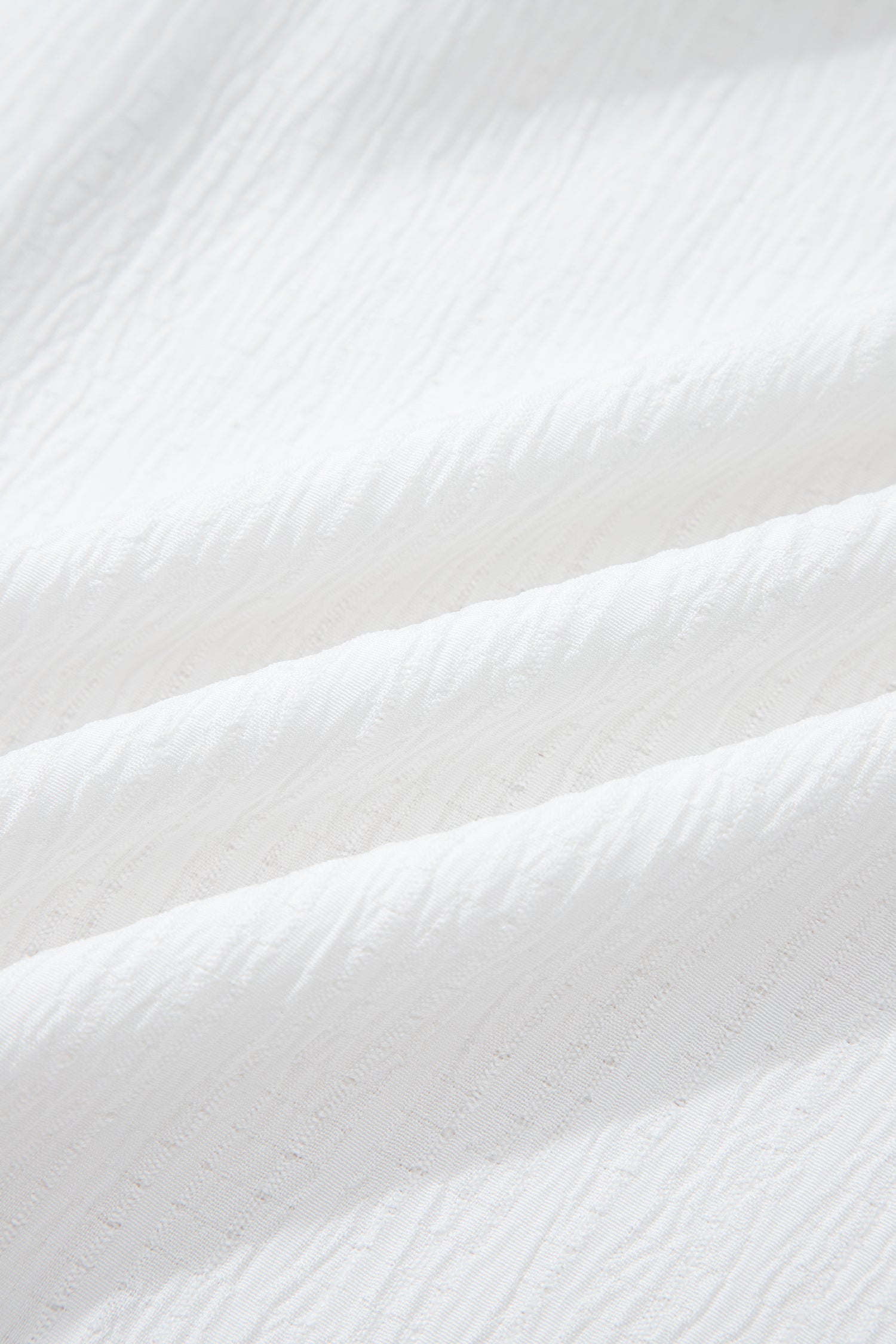 Elevate your everyday style with this chic button-down that's anything but ordinary. The crinkled texture adds visual interest while the durable polyester keeps things effortlessly wearable. Designed with a relaxed, loose fit and eye-catching lantern sleeves that bring a modern flair to classic tailoring, this shirt is your go-to for casual sophistication. Soft, lightweight, and undeniably funβit's the perfect piece to mix and match with your favorite bottoms. Polyester/Spandex