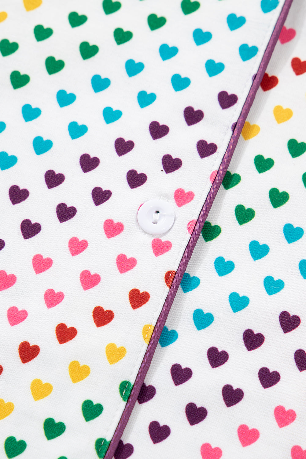 Snuggle up in style with this adorable white two-piece pajama set, complete with an all-over heart print that screams romance. Crafted from premium soft fabric, the long sleeves keep you toasty through the night while the coordinated top-and-bottom design makes a picture-perfect couple's look. Whether you're celebrating Valentine's Day, marking an anniversary, or simply want to add some love-filled comfort to your bedtime routine, this charming set transforms ordinary nights into special occasions worth remembering. Polyester/Spandex