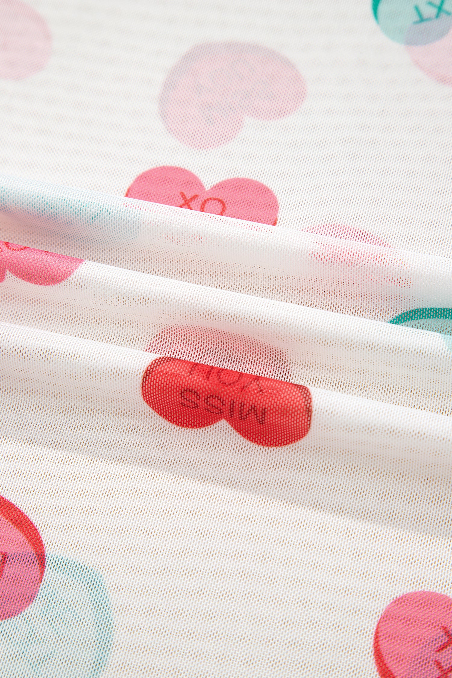 Spread the love this season in our exclusive Valentine heart top. Featuring a charming slogan heart print, this playful piece makes the perfect romantic statement. The sheer, stretchy mesh fabric feels incredibly comfortable for all-day wear, while the slim fit silhouette pairs beautifully with skinny jeans or sequin skirts. Effortlessly chic and undeniably sweet. Polyester/Spandex