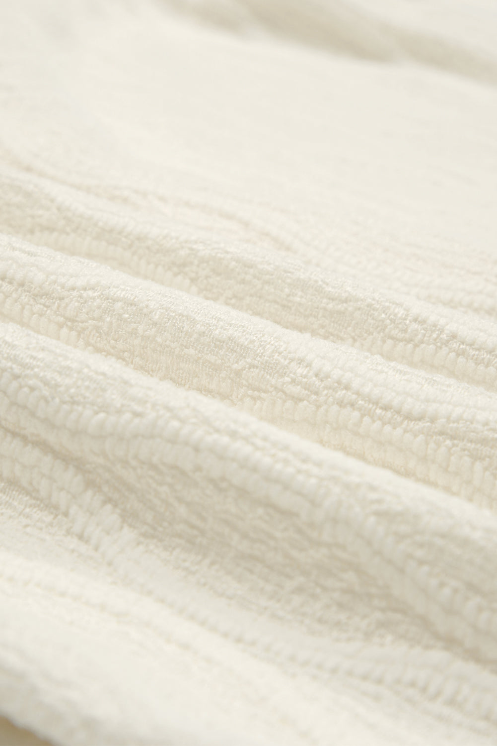Solid Textured Notched Neck Puff Sleeve Blouse