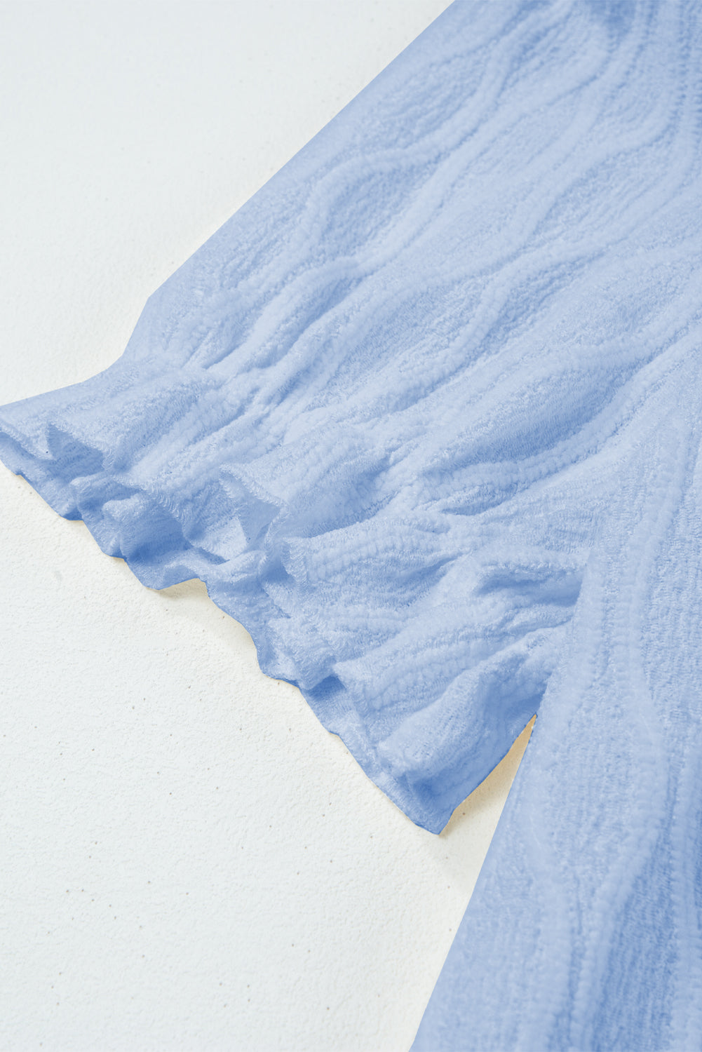 Solid Textured Notch Neck Puff Sleeve Blouse