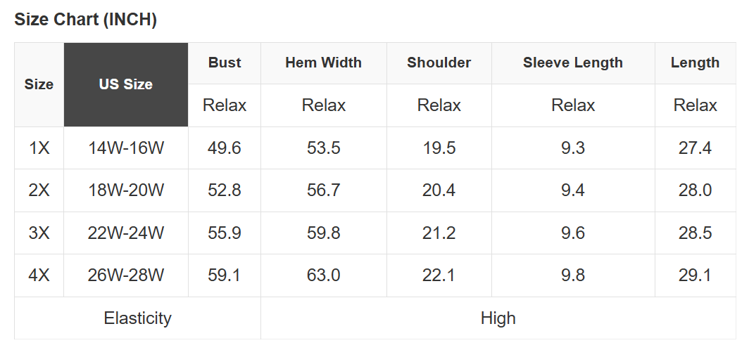 See size chart for approximate measurements.